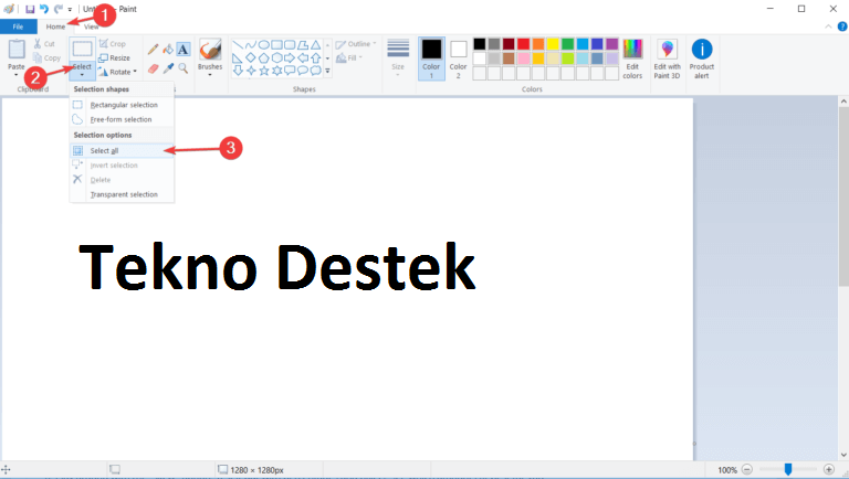 - Tümünü seç tılayınız, tuvalinizi seçecektir.