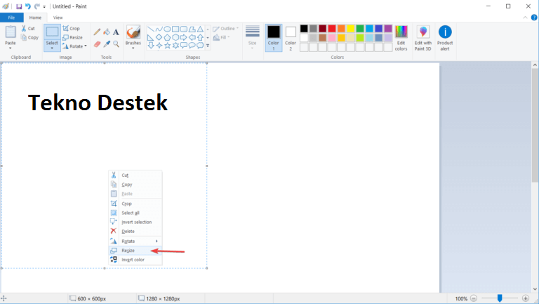 - Üzerine sağ tıklayın ve Yeniden Boyutlandır’ı seçin.