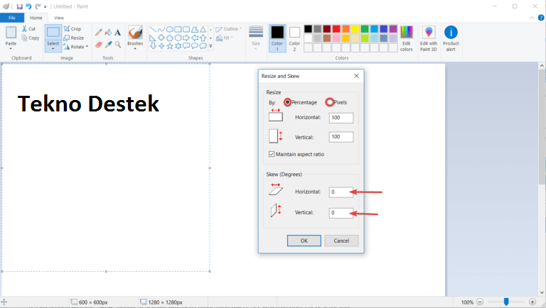 - İstediğiniz değeri elde edene kadar Skew’deki ( Yüzde ve Piksel ) değerlerle oynayın.
