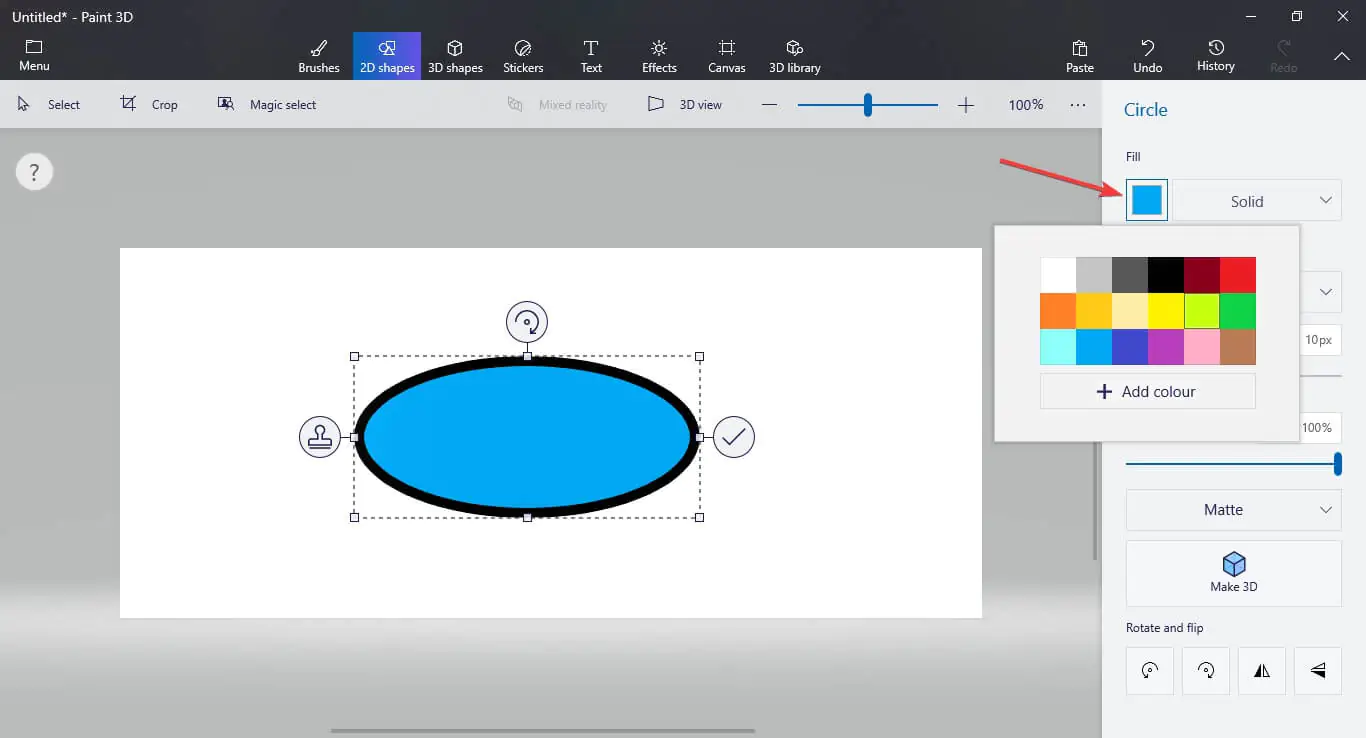 Paint 3D’de 2D şeklin rengini nasıl değiştirebilirim?