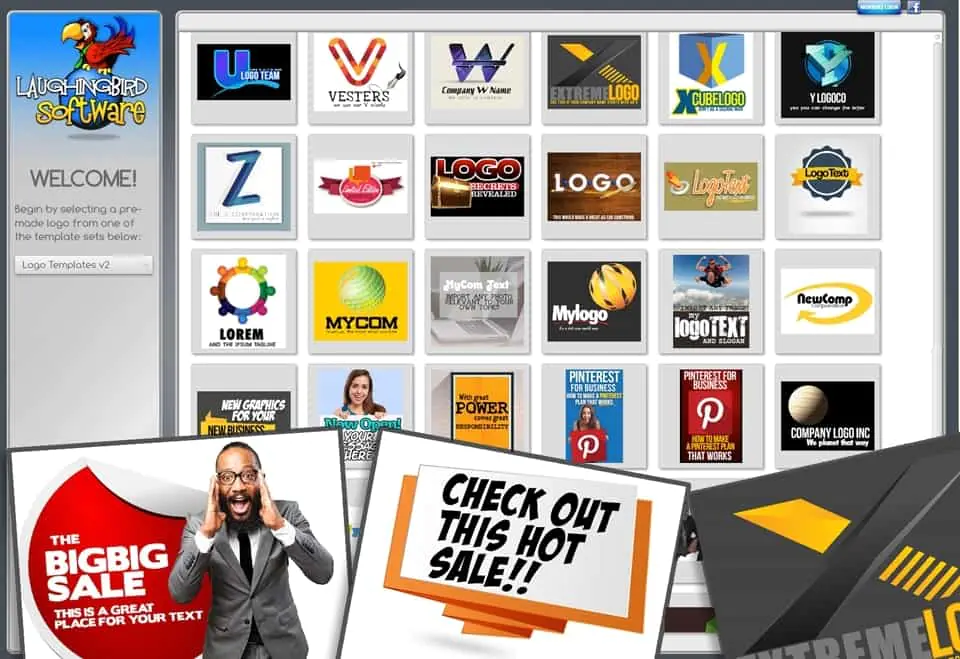 Laughingbird’ün Logo Oluşturucu, bir logodan, blog grafiğinden veya bir Facebook zaman çizelgesi kapağından bir YouTube başlığına veya bir kartvizite kadar her şeyi oluşturmanıza yardımcı olabilecek hepsi bir arada bir yazılım olduğunu iddia ediyor.
