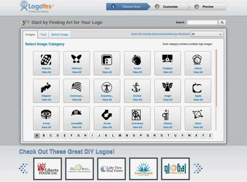 Logonuzu tasarladığınız çevrimiçi sihirbaz oldukça açık. Endüstrinizi ve ardından markanız için alakalı bir şablon sanatını seçerek işe başlarsınız.