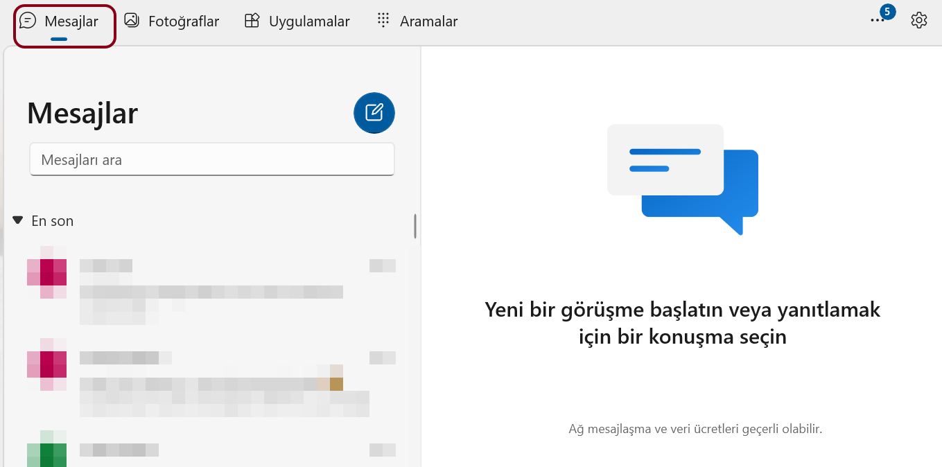 • Phone Link’teki “Mesajlar” sekmesine gidin. Burada son konuşmalarınız görüntülenir.
