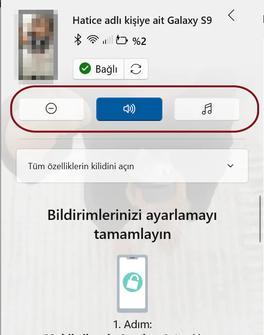 • Ancak unutmayın ki bu özellik, telefonunuzun Bluetooth aracılığıyla PC’nize bağlanmasını gerektirir.