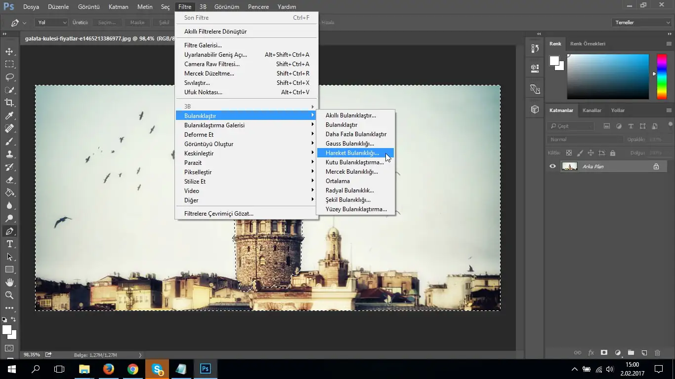- Öncelikle örnek bir resim açalım. Resmimizde ön plana çıkarmak istediğimiz alan Galata Kulesi. Bunun için çevresinin bulanıklaştırılması gerekecektir.