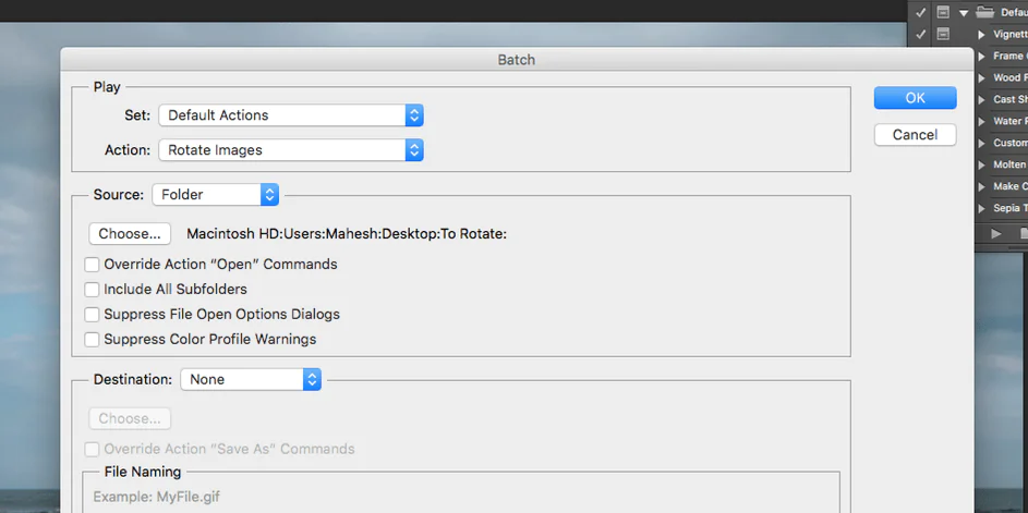 Döndürülecek birkaç görüntünüz varsa, bunu yapmak için yukarıdaki yöntemleri kullanmak sonsuza kadar sürecektir. Daha verimli bir yaklaşım, Photoshop’ta yerleşik olan bir otomasyon özelliğini kullanmak olacaktır.