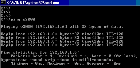 Ping IP Adresi, örneğin ping 192.169.0.1 veya bir bilgisayar adına ping atmak için: