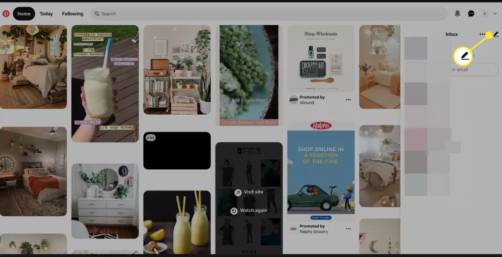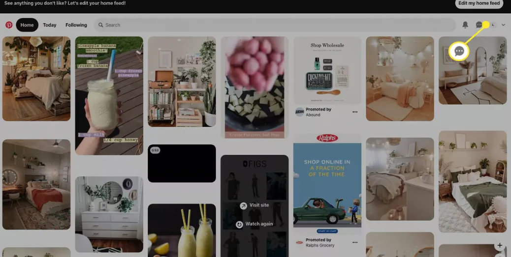 1-Pinterest’teki herhangi bir yerden, sağ üstteki konuşma balonunu seçin.