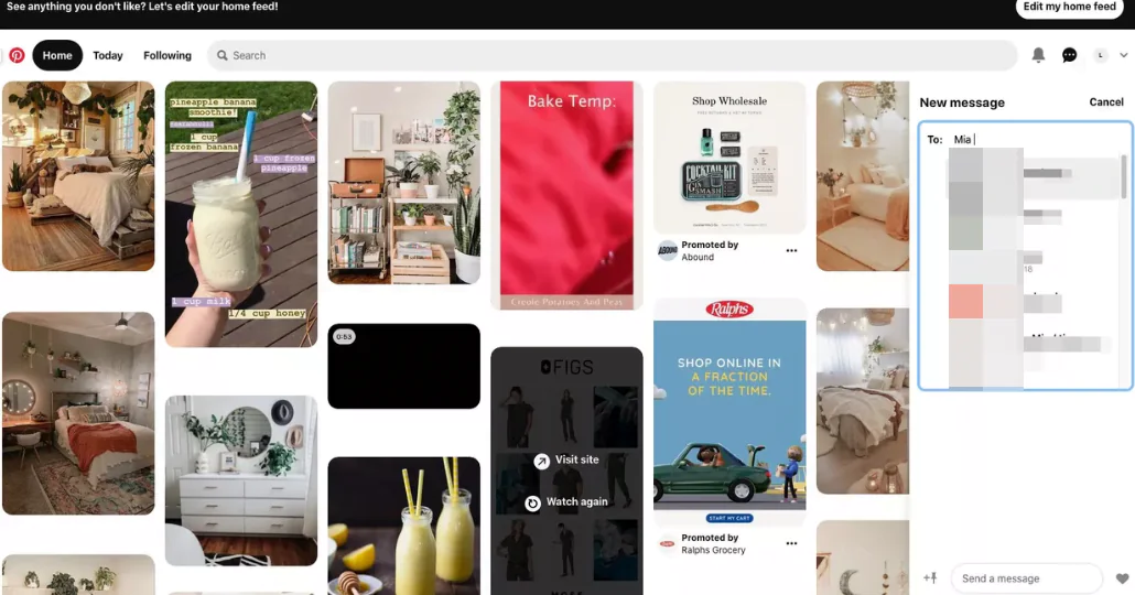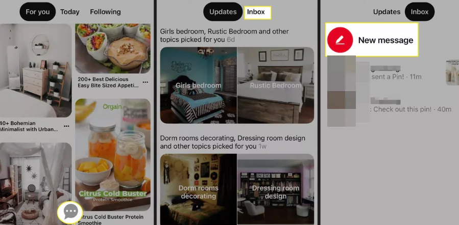 Pinterest’in mobil uygulamasını kullanıyorsanız doğrudan mesaj göndermek ve pin paylaşmak da kolaydır.