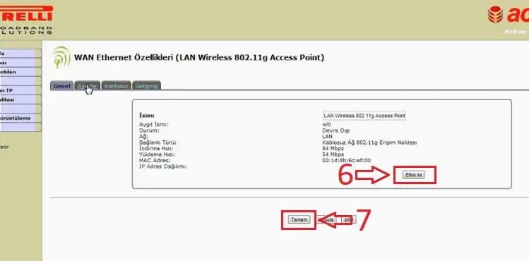 - İlk adımda Etkin Kıl butonu ile kablosuz ağımızı aktif hale getiriyoruz.