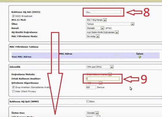 - Sonraki adımda ise Kablosuz sekmesi altındaki menülerden Wireless ağ adımızı ve şifremizi belirleyerek işlemlerimizi tamamlıyoruz.