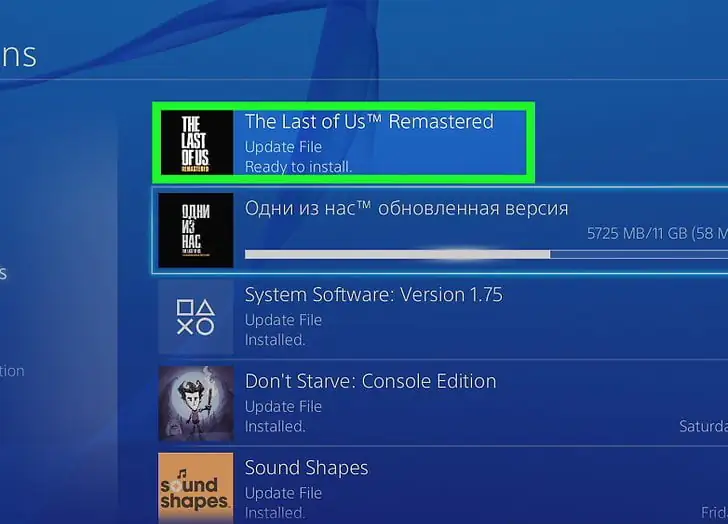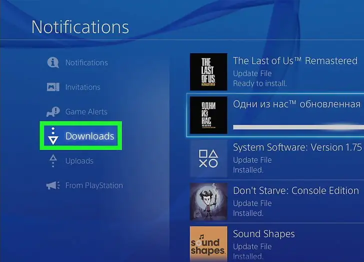 - ‘İndirilenler – İndirmeler – (Downloads)’ ekranında, uygulamalarınız ve oyunlarınız için mevcut ve indirilebilir güncellemelerin (tam) listesini göreceksiniz. ‘X’ tuşuna basarak güncellemek istediğiniz oyunu seçin ve daha sonra güncelleme işlemini onaylayın.