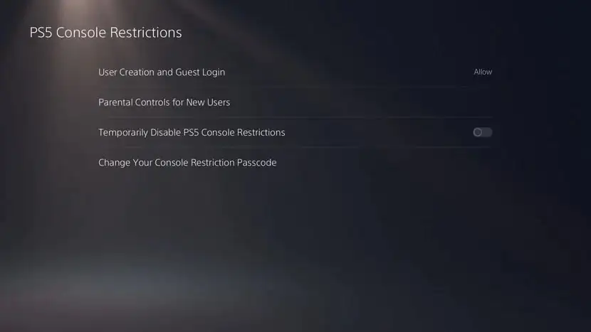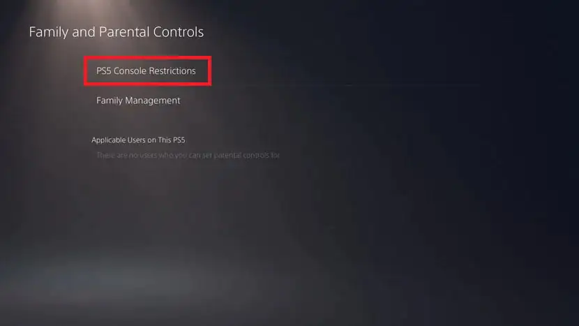• PS5 Konsolu Kısıtlamaları (PS5 Console Restrictions) menüsünü seçin.