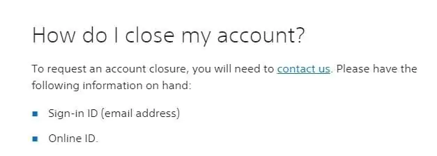 • Hesabınızı kapattıktan sonra ne olacağını ve hangi bilgilere sahip olmanız gerektiğini (Çevrimiçi PSN Kimliği, hesapla ilişkili e-posta) ayrıntılarıyla içeren gelen sayfayı okuyun.