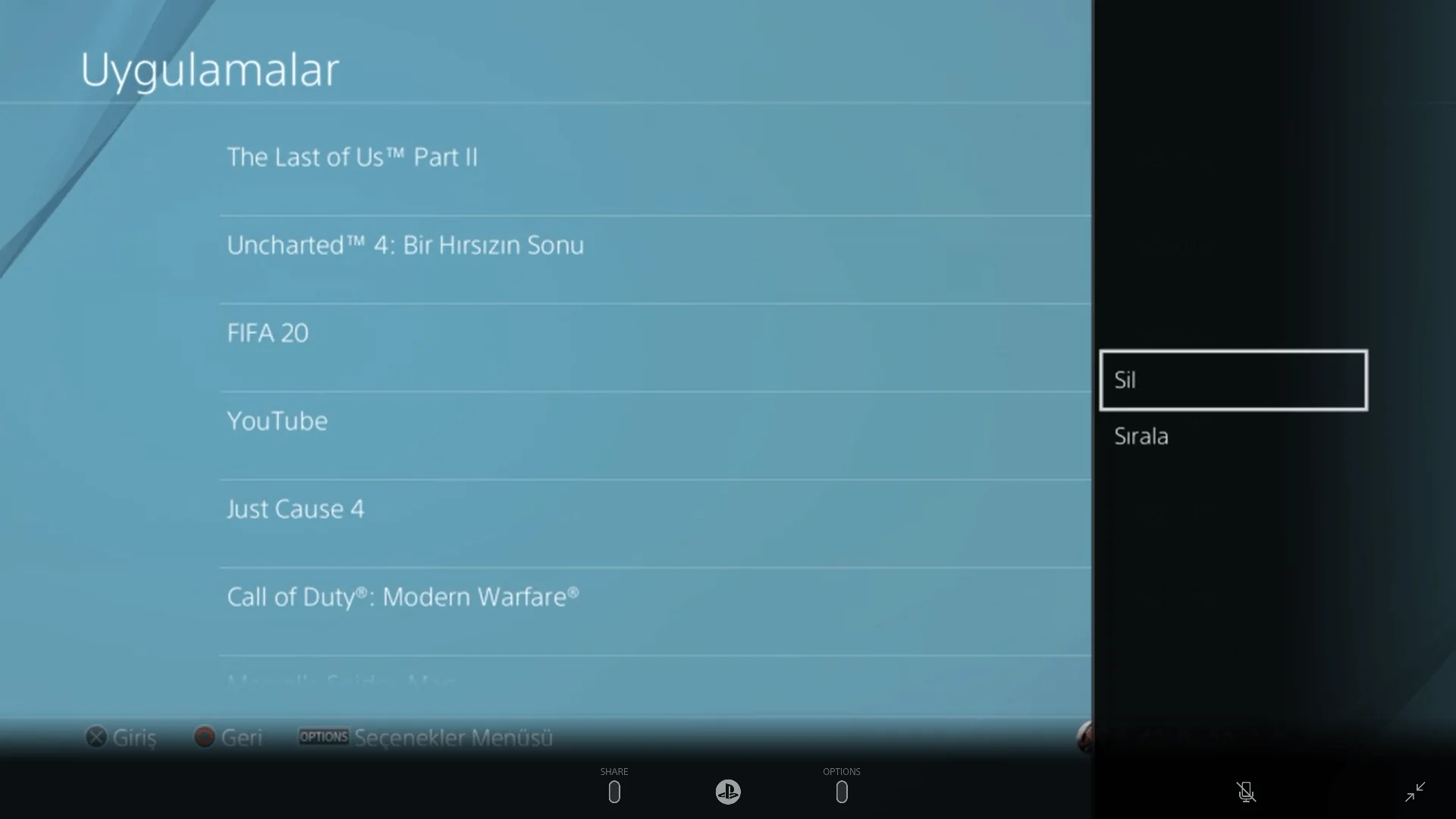 Basit yöntemle silmek istediğiniz uygulamanın üzerine gelerek Dualshock 4 üzerinden Options tuşuna tıklayarak Sil diyerek silebilirsiniz.