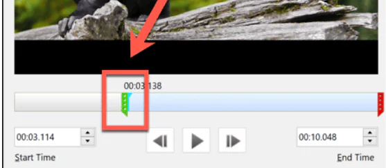 - Kırpılacak belirli bir noktayı bulmak için Oynat düğmesini tıklayarak videoyu oynatın.