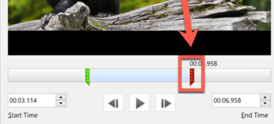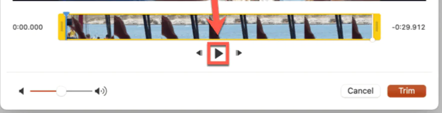 - Geçerli seçiminizi Oynat tuşuna basarak görüntüleyebilirsiniz . Videonun yalnızca Kırpmayı Başlat ve Kırpmayı Bitir işaretçileri arasındaki kısmı oynatılacaktır.