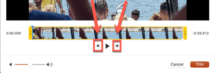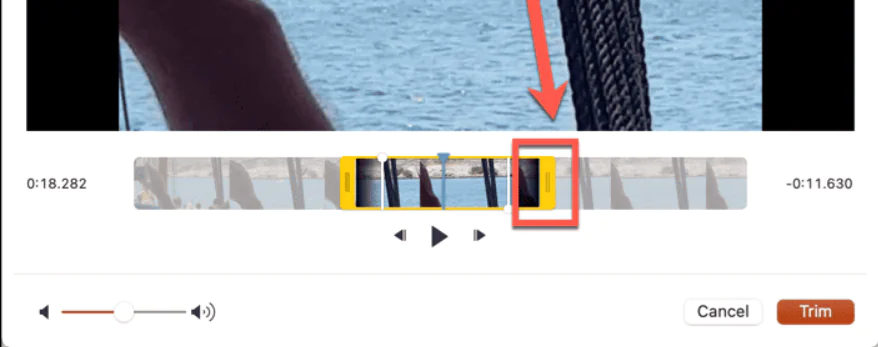 - Kesiminiz için doğru konumu bulduğunuzda, Kesimi Başlat veya Kesimi Bitir tutamaçlarından birini tıklayıp basılı tutun.