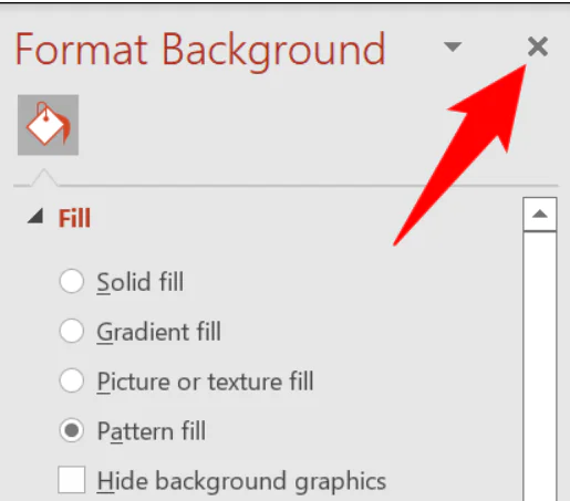 Değişiklikleriniz gerçek zamanlı olarak slaytlarınıza yansır. Özel arka planınızı yapılandırmayı tamamladığınızda, bölmenin sağ üst köşesindeki “X” işaretine tıklayarak “Arka Planı Biçimlendir” bölmesini kapatın.
