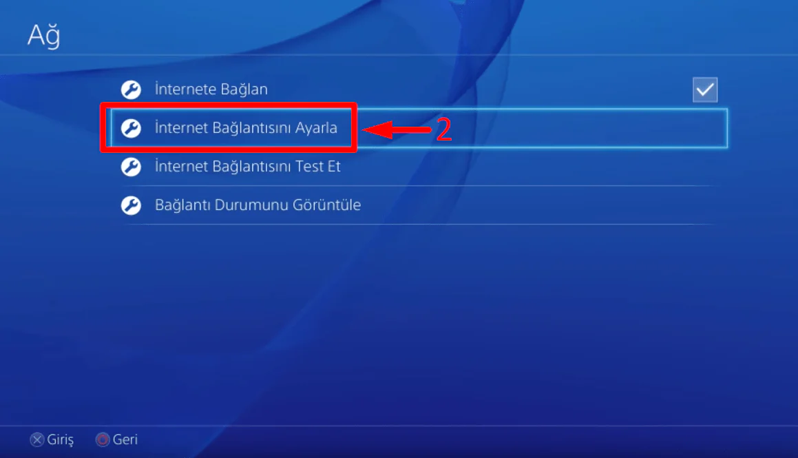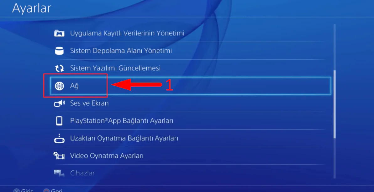 İşlemlerimize Playsation 4 Ayarlar menüsünden bulunan Ağ bölümüne girerek başlıyoruz.