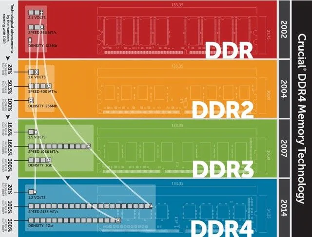 DDR RAM’in DDR, DDR2, DDR3 ve DDR4 gibi farklı sürümlerde geldiğini fark etmiş olabilirsiniz. Bunlar, birbirleriyle uyumlu olmayan giderek daha hızlı RAM modülleridir.