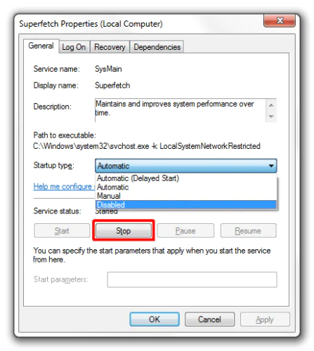 Disk performansını olumsuz etkiliyorsa SuperFetch’i devre dışı bırakmak mümkündür, ancak bu sorunun olmaması durumunda, SuperFetch’i etkin tutmanızı şiddetle tavsiye ederiz! SuperFetch’i kapatmak kullanılabilir bellek miktarını artırabilirken, sisteminizin performansı üzerinde olumsuz bir etkisi olacaktır.