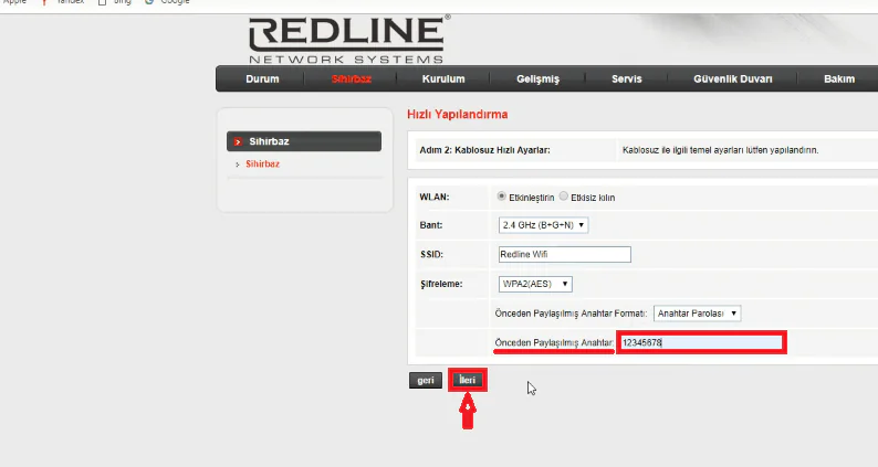 - Kablosuz ağ şifrenizi de oluşturduktan sonra İleri butonuna tıklayın.