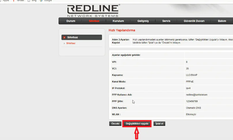 - Kurulum ayarlarınızda ve bilgilerinizde bir hata yok ise Değişiklikleri uygula butonuna tıklayıp, kurulum işlemini tamamlayabilirsiniz.