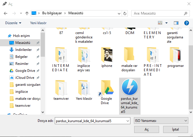 Format flashı oluştururken kapasitesinin minimum 4GB olması lazım. Açılan programda takmış olduğumuz diski direkt görüyor. Tabi bundan önce de Linux Pardus işletim sistemi diski oluşturacağımız için, Pardus işletim sisteminin ISO dosyasını indirmiş olmamız gerekiyor. İndirkten sonra Rufus‘ta yazdırma işlemi için dosya seçerken, dosya türünü “ISO yansıması” seçip daha sonra da indirmiş olduğumuz ISO imaj dosyamızı seçiyoruz ve Aç butonuna tıklıyoruz.