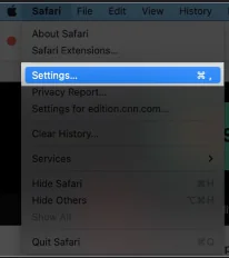 *Üstteki menü çubuğundan safari sonra ayarları seçin.
