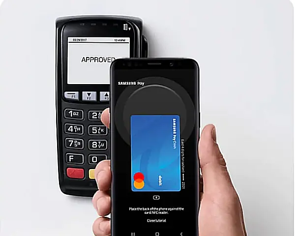 Samsung Pay, kablosuz teknolojiyi destekleyen makinelerde ödeme yapmak için telefonda NFC teknolojisini kullanır. Telefon makinenin yakınına yerleştirildiğinde kart bilgileriniz NFC özellikli ödeme terminaline aktarılır.