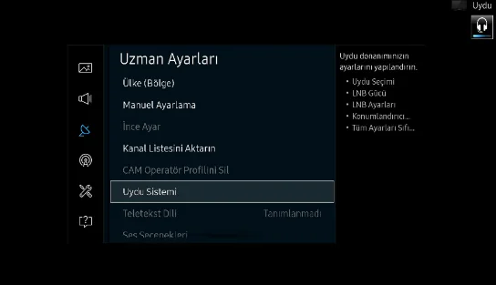 • Açılan menü listesinde ‘Uydu Sistemi’ menüsüne giriş yapıyoruz.