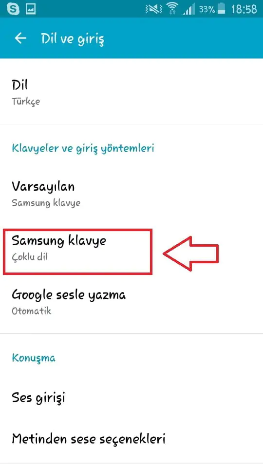 - Gelen sayfada yer alan menülerden Samsung klavye menüsüne giriş yapıyoruz.