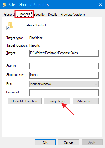 “Kısayol” sekmesinde, “Simgeyi Değiştir” düğmesini tıklayın.