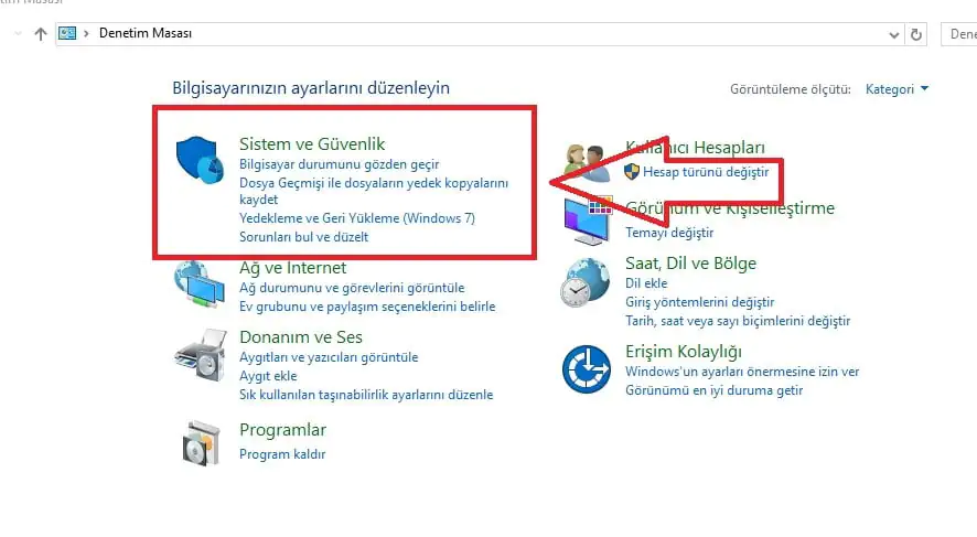 • Açılan pencerede ‘Sistem ve Güvenlik’ bölümüne tıklayıp işlemlerimize devam ediyoruz.