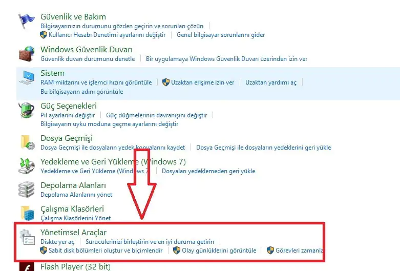 • Açılan pencerede ‘Yönetimsel Araçlar’ menüsüne tıklıyoruz.