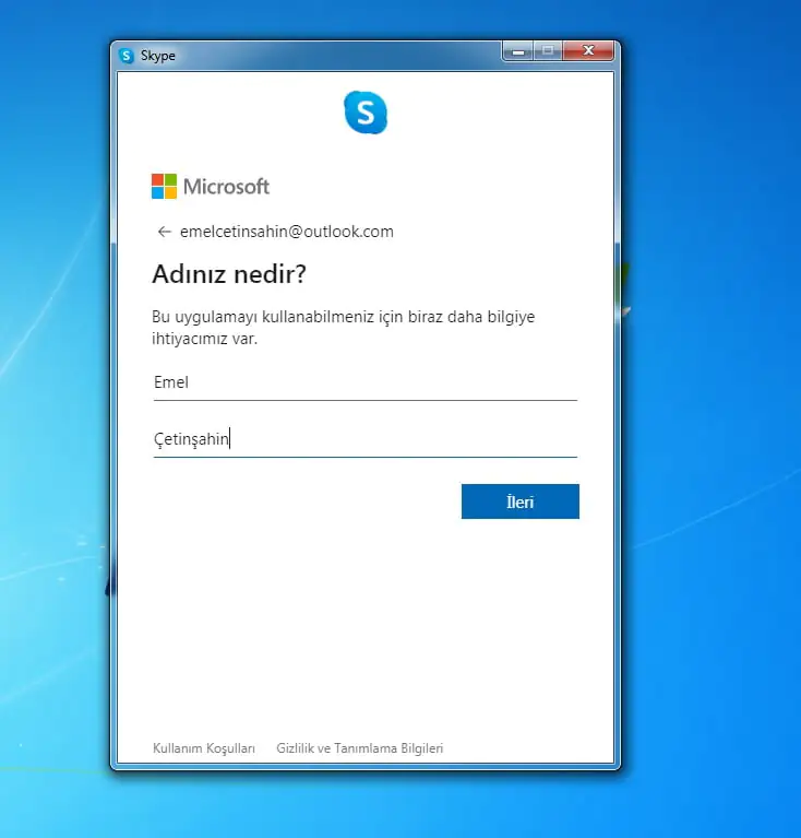 Mevcut bir e-posta adresi girebilir veya yeni bir e posta adresi de alabiliriz. Sonra İlgili seçeneği işaretledikten sonra ileri sekmesine tıklayın. Ardından kişisel bilgileri doldurarak hesap oluşturma ve kurulum işlemlerini tamamlayın.