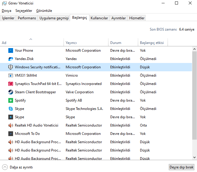 1. Ctrl + Shift + Esc tuşlarına basın