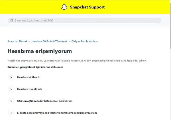 Hesabınızın kilidini açarken herhangi bir sorunla karşılaşırsanız veya görünürde bir sebep olmadan kilitlendiğine inanıyorsanız Snapchat ekibiyle de iletişime geçebilirsiniz. İletişim formunda çeşitli seçenekler mevcuttur, sorununuza en uygun olanı seçin.