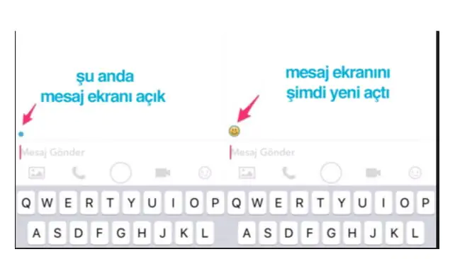 - Ekran da görülen nokta resmi, mesaj gönderdiğiniz hesabın aktif ve online olduğu; işareti de “mesaj ekranını yeni gördü” anlamındadır.
