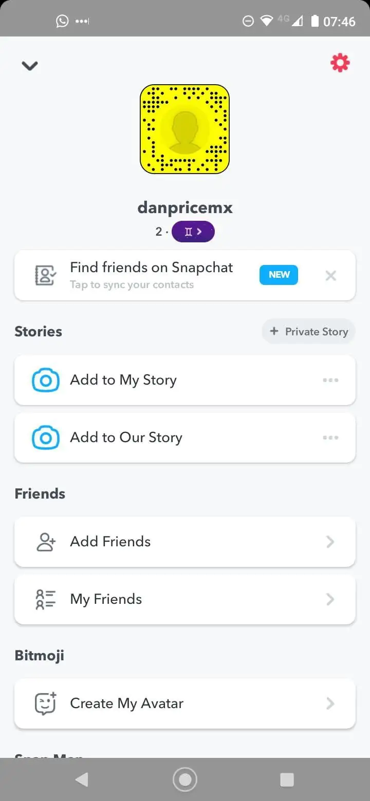 • Snapchat uygulamasının sol üst köşesindeki profil resminize dokunun.