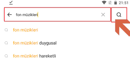 Uygulama çalıştırdıktan sonra Ekrana gelen arama çubuğuna edinmek istediğiniz multimedyanın ismini yazalım ve arama merceğine dokunalım.