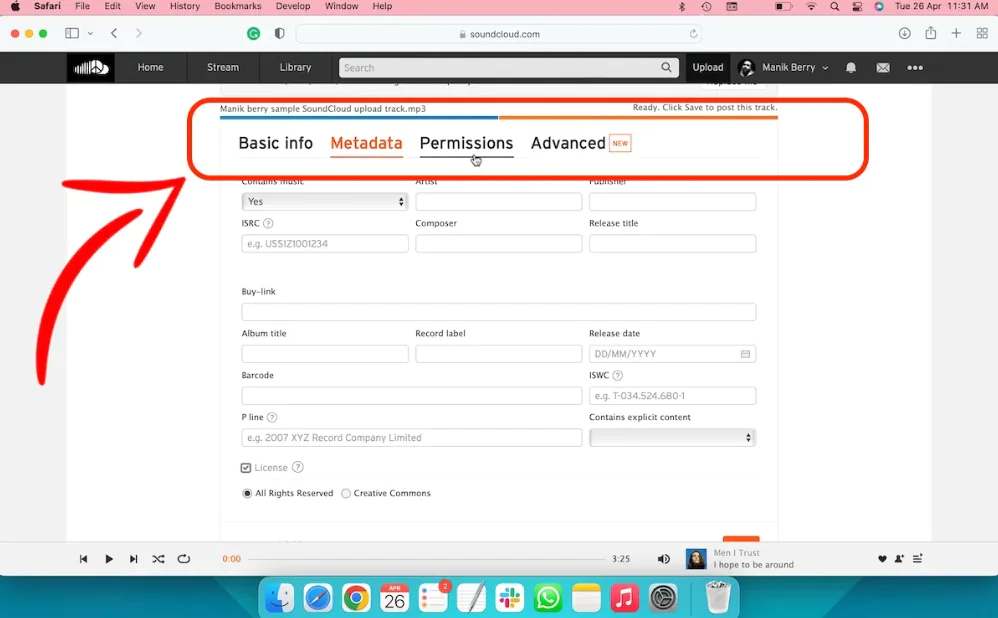Masaüstünüzden Soundcloud’a müzik yüklediğinizde, mümkün olduğunca fazla ayrıntıyı doldurduğunuzdan emin olun.