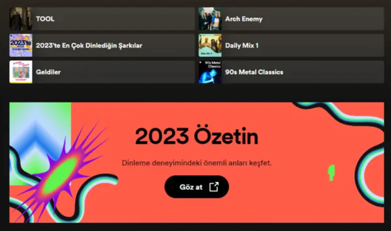 • İlk seçeneği tıkladığınızda, Spotify Wrapped 2023’ün ilk sayfasına doğrudan yönlendirilebilirsiniz.