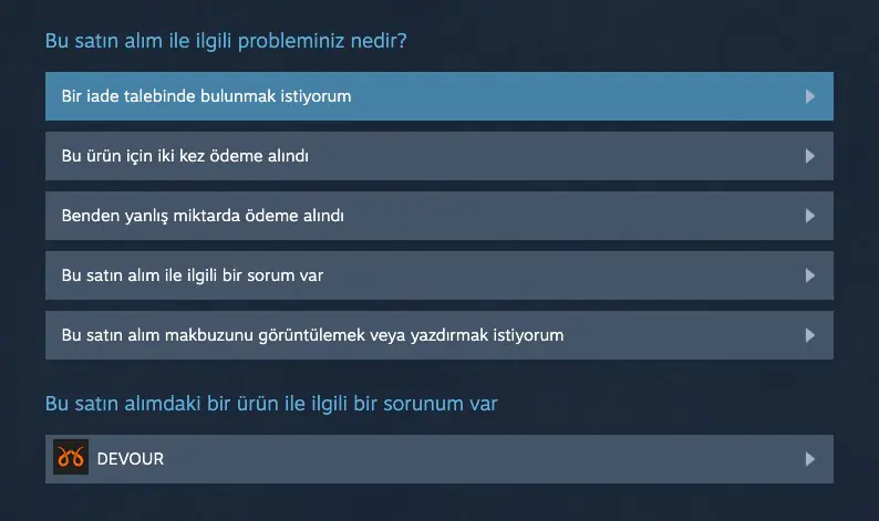 Satın aldığınız herhangi bir oyun için geri ödeme talebinde bulunabilirsiniz, ancak talebiniz yalnızca satın alma işlemi Steam’in geri ödemelerle ilgili katı gerekliliklerini karşılıyorsa onaylanır. Steam’de geri ödeme talebinde bulunmanın yolu: