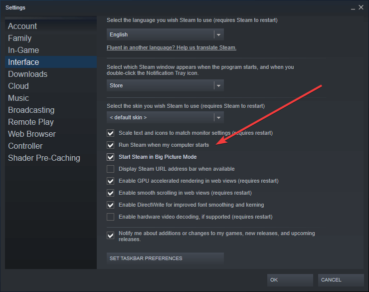 5. Bilgisayarım başladığında Steam Çalıştır yazan kutunun işaretini kaldırın.