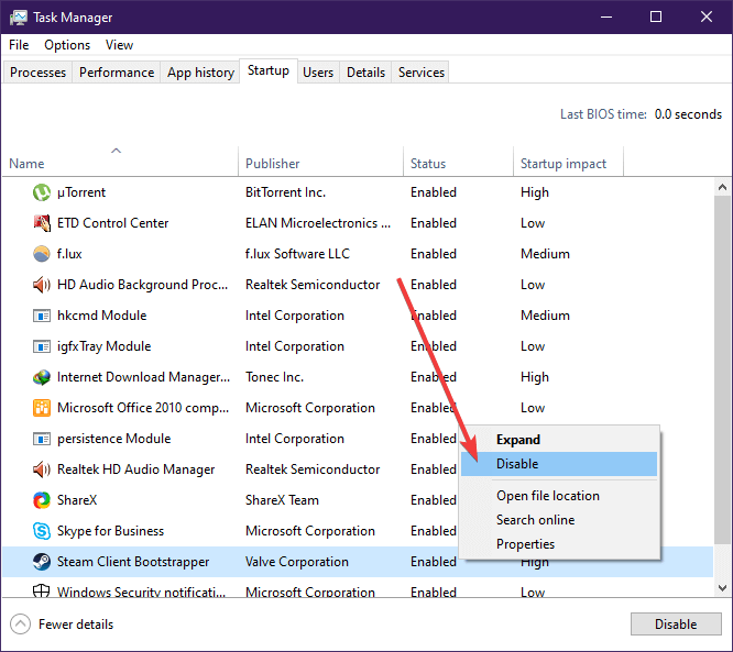 2. Steam’in otomatik başlatılmasını Görev Yöneticisinden devre dışı bırakın