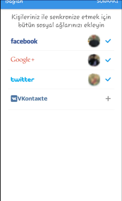 Bizden, sosyal hesaplarımıza giriş yapmamızı isteyecektir. Şimdilik Facebook, Google, Twitter ve VK hesapları için senkronize mevcut olduğu için, sadece bu dört hesabı öneriyor. Bunlardan herhangi biri ile işleme devam edebildiğimiz gibi tümü ile de devam edebiliriz. Ama ne kadar çok hesap ile giriş yaparsak, sorgulanan yelpazeyi genişletmiş oluruz. Giriş yaptıktan sonra sağ üstten ‘Sonraki’ menüsüne dokunuyoruz.
