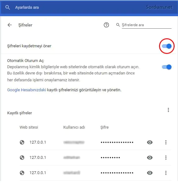 4. “Şifreleri kaydetmeyi öner/Oturum aç” altında, “Cihaz şifresi ile” seçeneğini seçin.