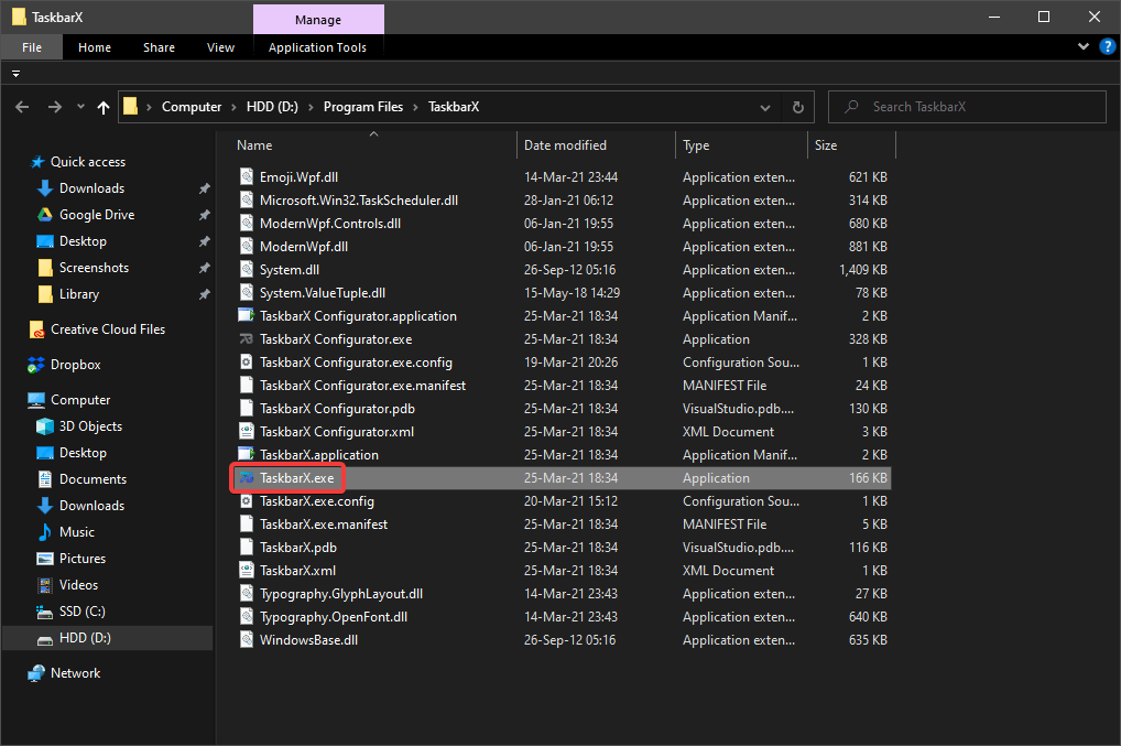 Dosyaları çıkardıktan sonra TaskbarX.exe dosyasını çalıştırın.